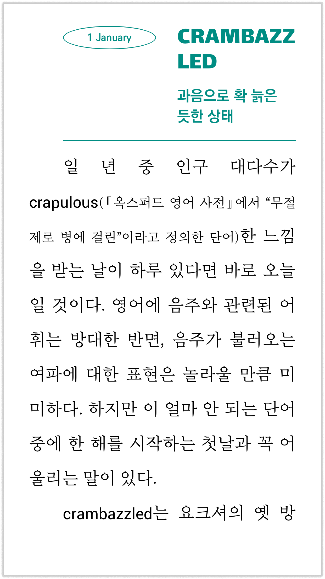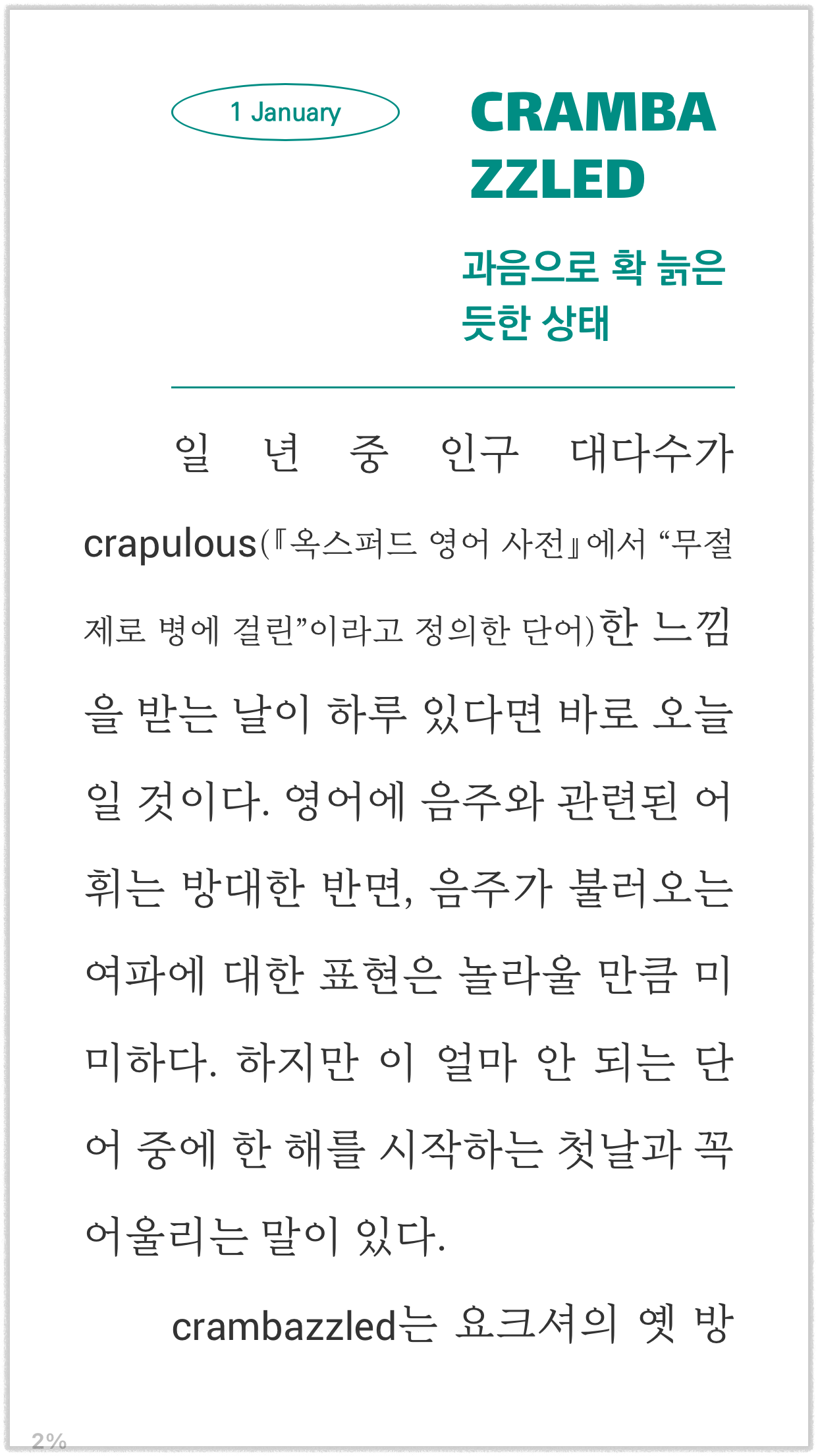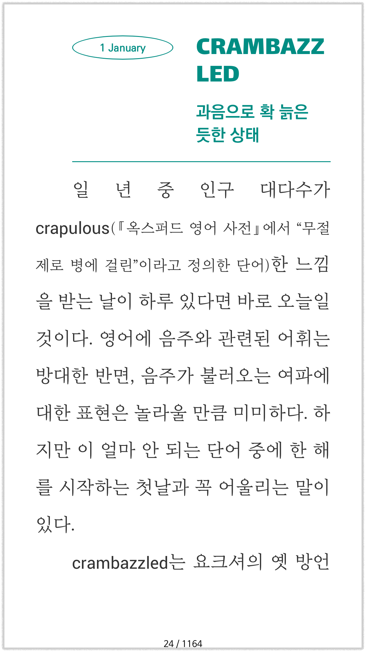 한편, 국내 각 유통사 뷰어의 상황은 또 다릅니다. 뷰어마다 나름의 특성을 가지고 있습니다. 특성이라기보다는 버그(bug)라고 보는 게 타당하겠지요. 전자책의 설정이 무시되거나 제대로 반영되지 않는 경우가 종종 있으며, 하이픈이 자동으로 생성되면서 영단어가 분리되는 기능을 지원하는 뷰어는 없는 듯합니다. 하지만, 국내 전자책 시장의 구조상 독자는 뷰어를 선택할 수 없고 구매한 전자책을 해당 유통사의 뷰어로만 봐야 하기 때문에 각 유통사의 전용 뷰어에서 제대로 출력되는지 여부도 반드시 확인해야 합니다.