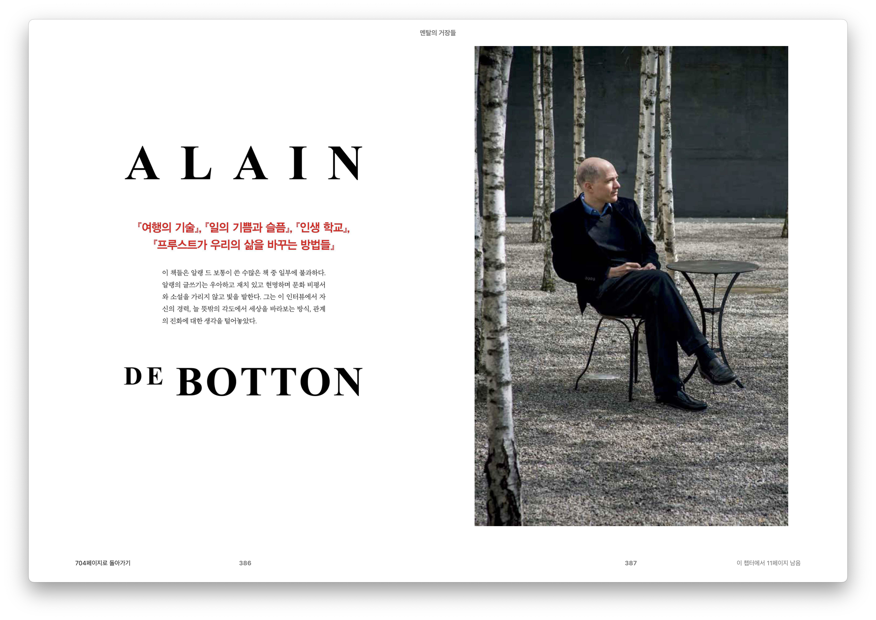 명사와의 인터뷰 섹션은 각각 인터뷰 대상자에 대한 간략한 소개와 인물 사진으로 할당된 두 페이지로 시작되고 바로 인터뷰 내용이 이어지는 방식으로 구성돼 있다.