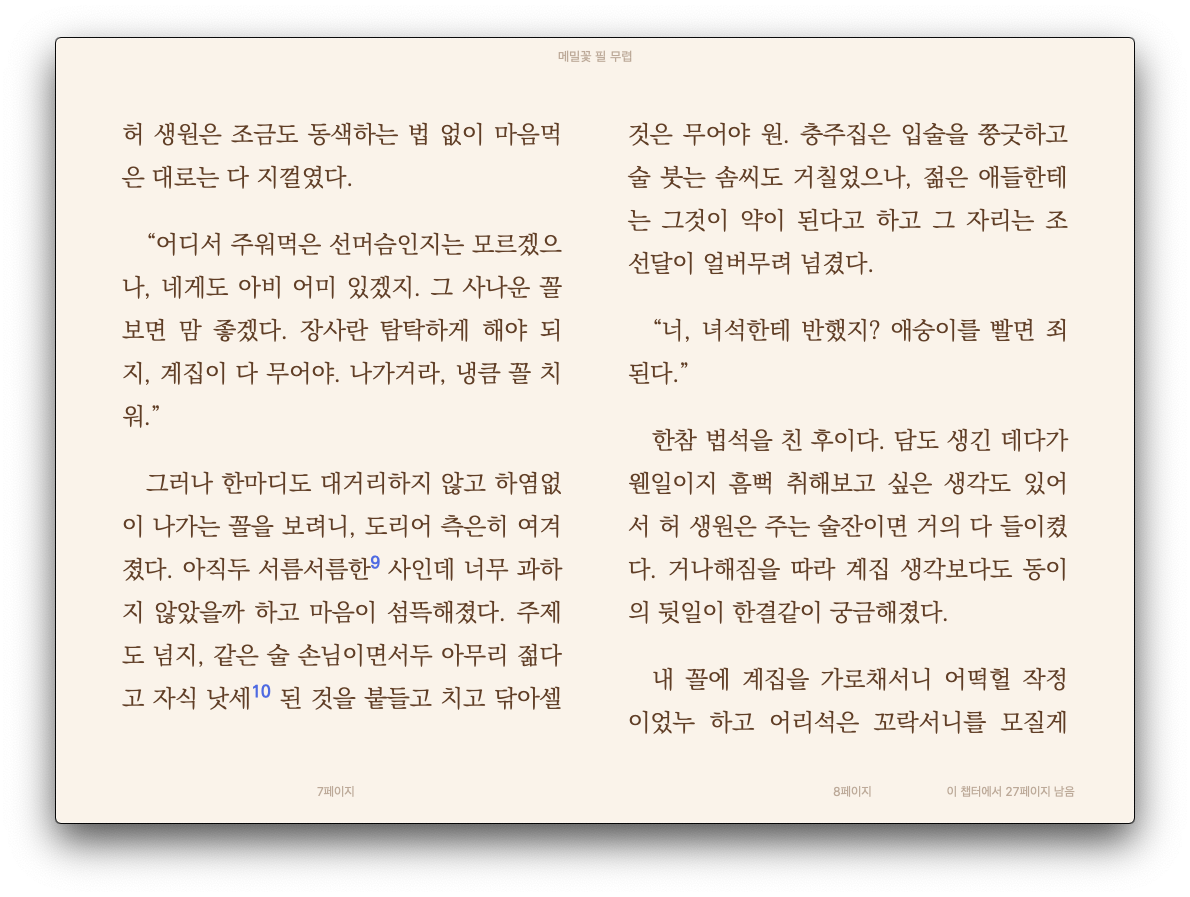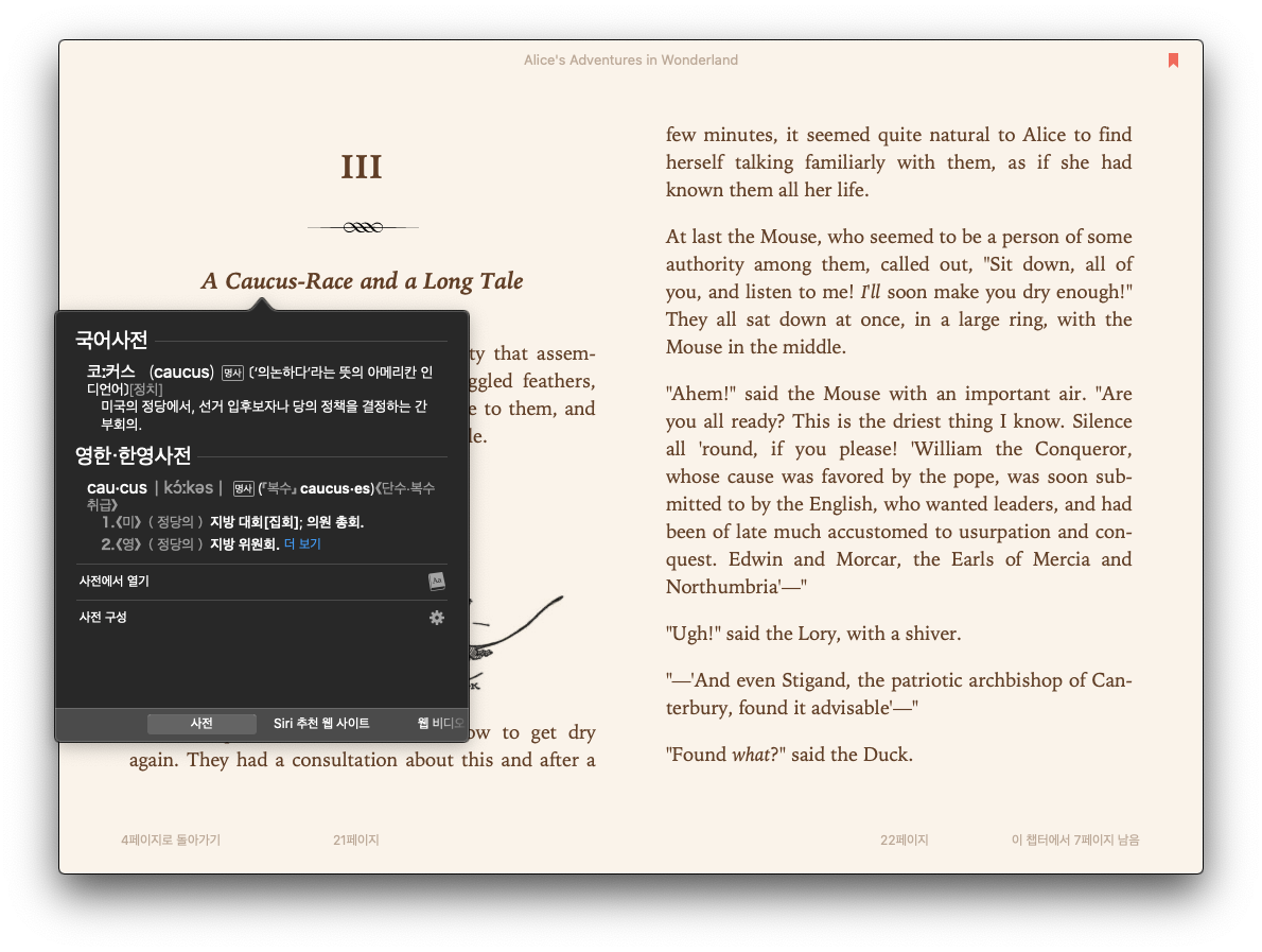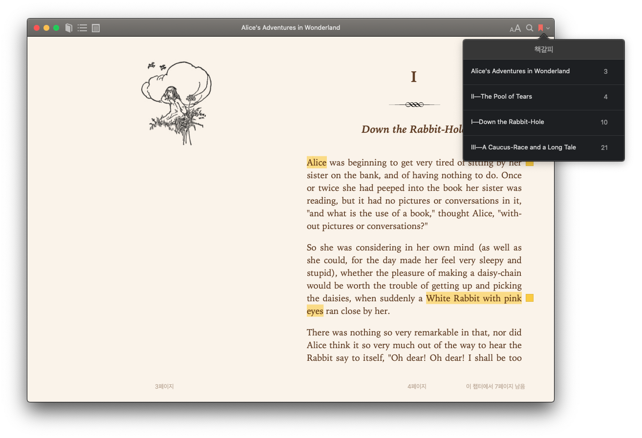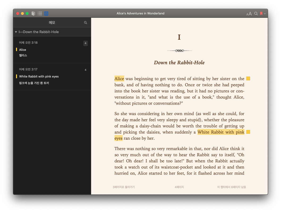 책을 보다가 중요하다고 생각되는 부분에 밑줄을 치거나 마커로 표시하고 메모를 하는 경우가 종종 있다. 전자책에서도 이런 기능을 지원하는데 참으로 편리하고 강력한 기능이 아닐 수 없다.
